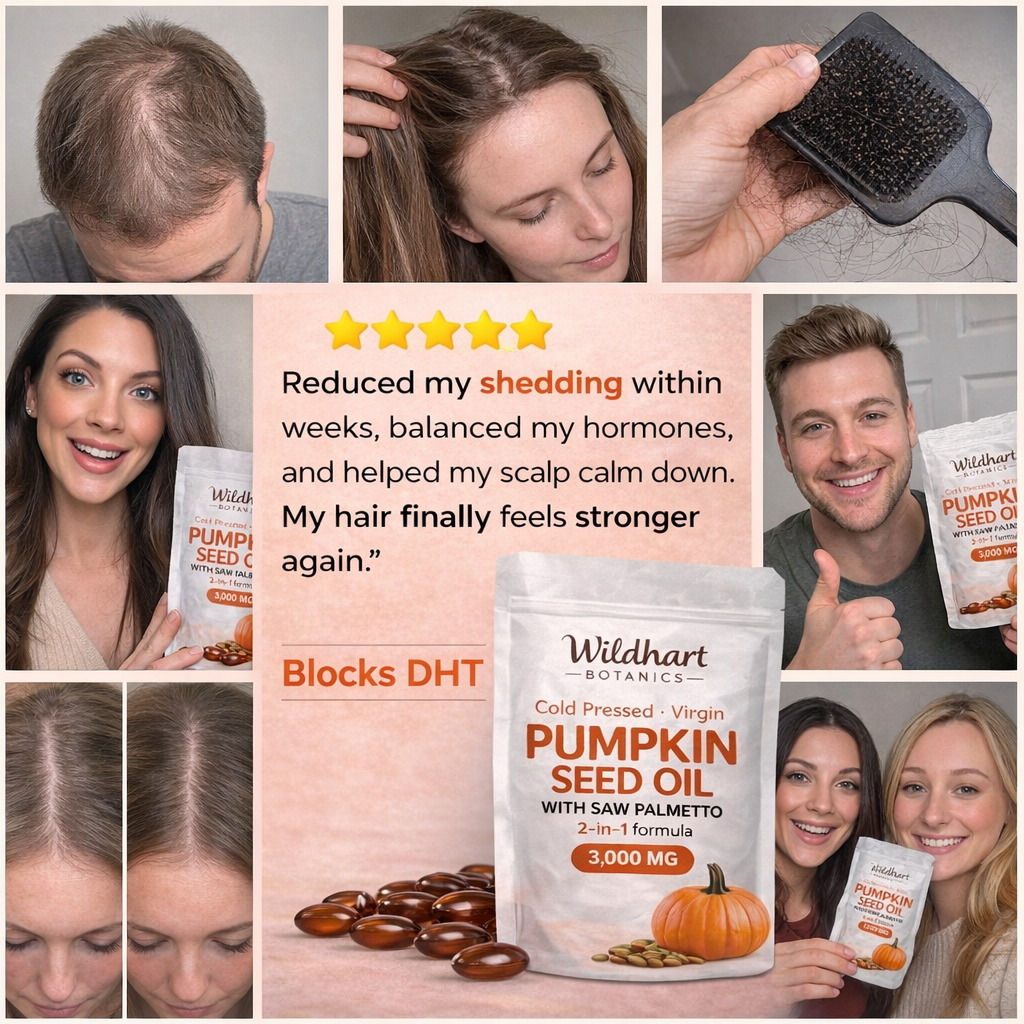Most supplements overpromise and underdeliver. Our pumpkin seed oil + saw palmetto formula targets DHT pressure naturally—helping you stabilize shedding without harsh medications.